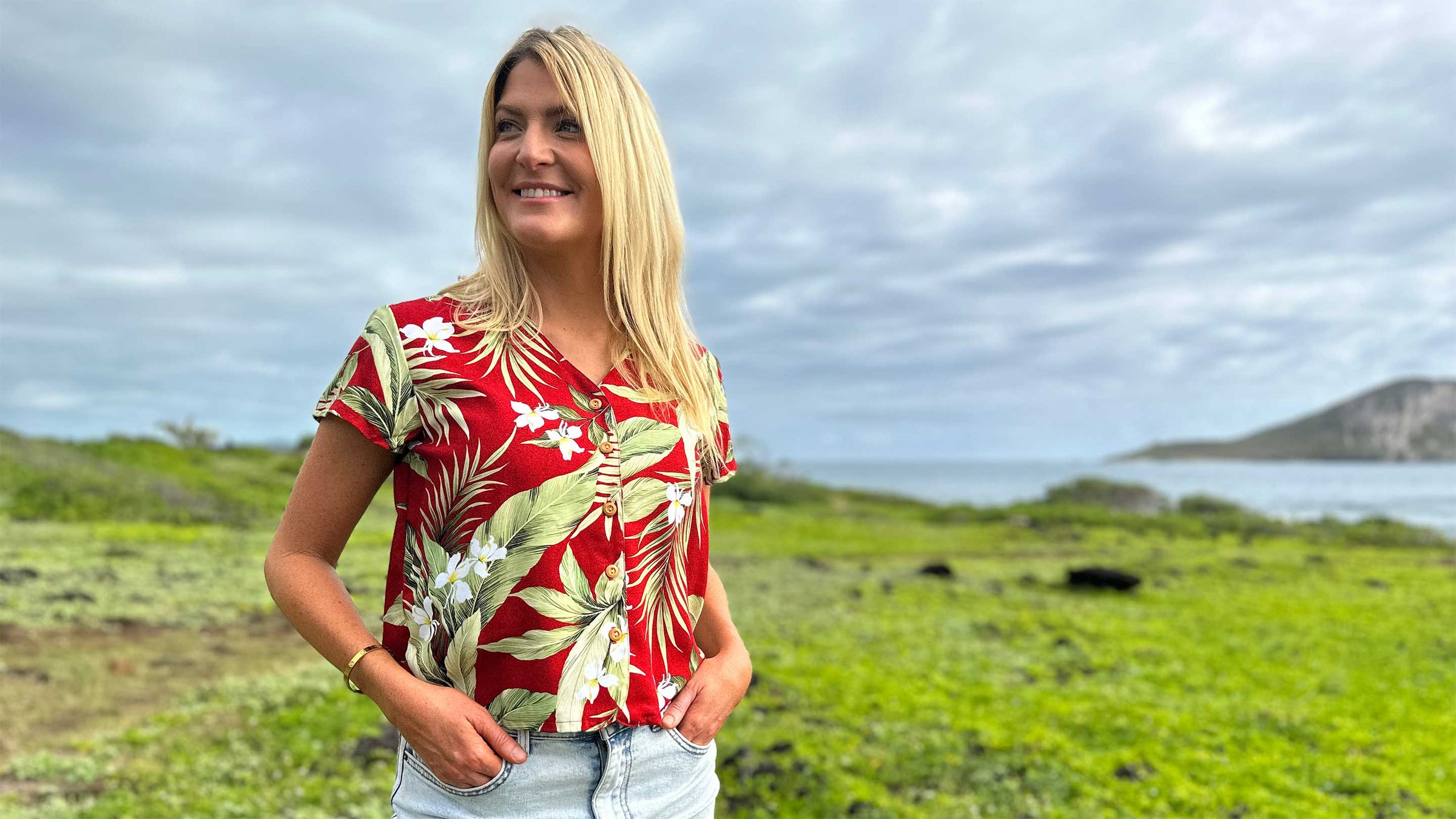 Shop Women's Hawaiian Shirts - Paradise Found Jungle Bird V-Neck Blouse
