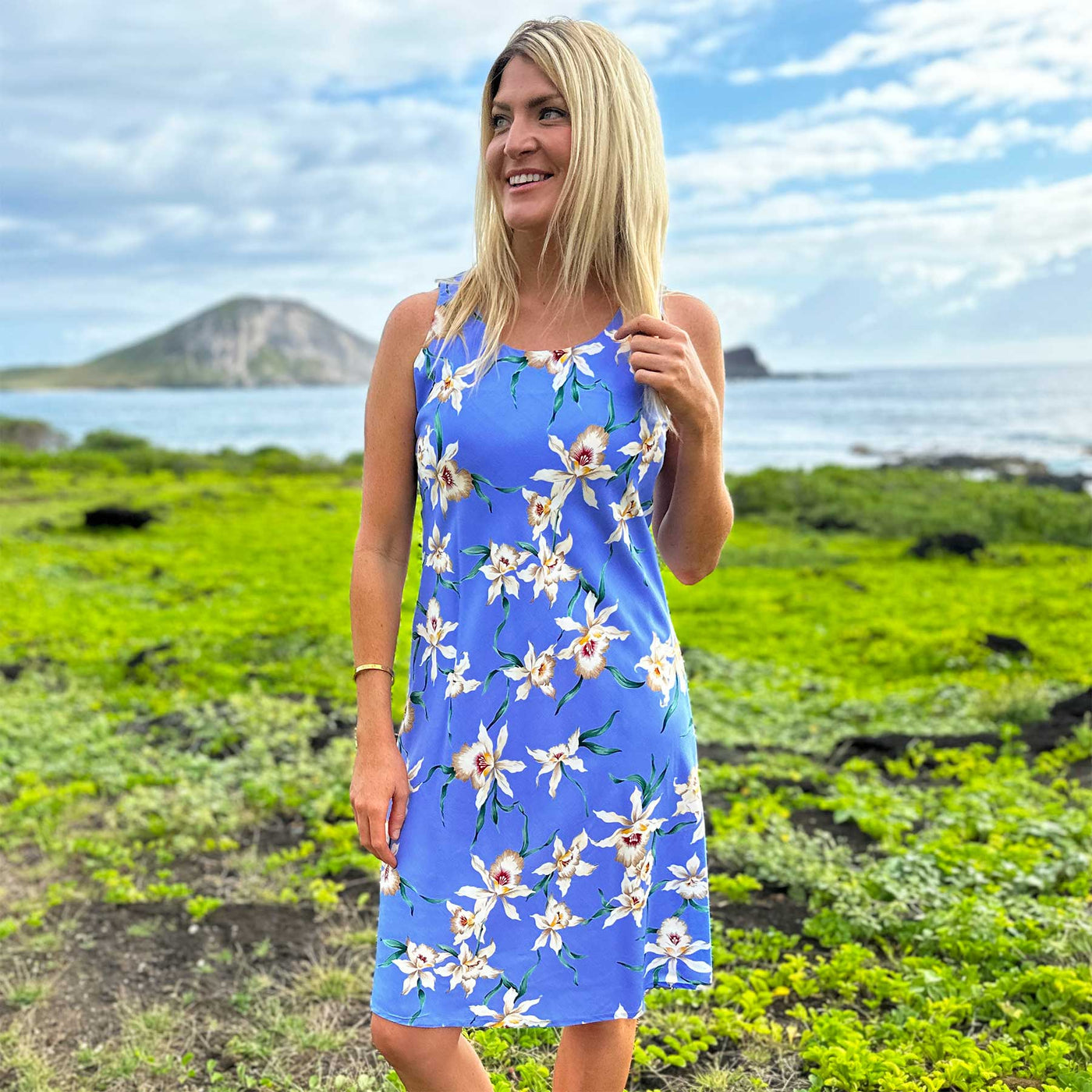 Hibiscus Islands Navy Spaghetti Tube Dress